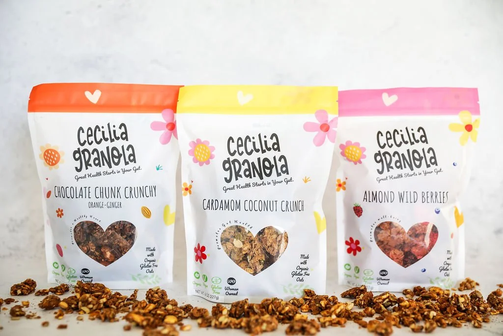 Cecilia Granola is crafted with the finest organic, gluten-free oats and a blend of wholesome, all-organic ingredients. Each batch is lovingly toasted to crunchy perfection and gently broken into delicious, satisfying chunks—perfect for snacking, topping, or enjoying as a nourishing meal. Simple, pure, and made with care, Cecilia Granola brings you delight in every bite.